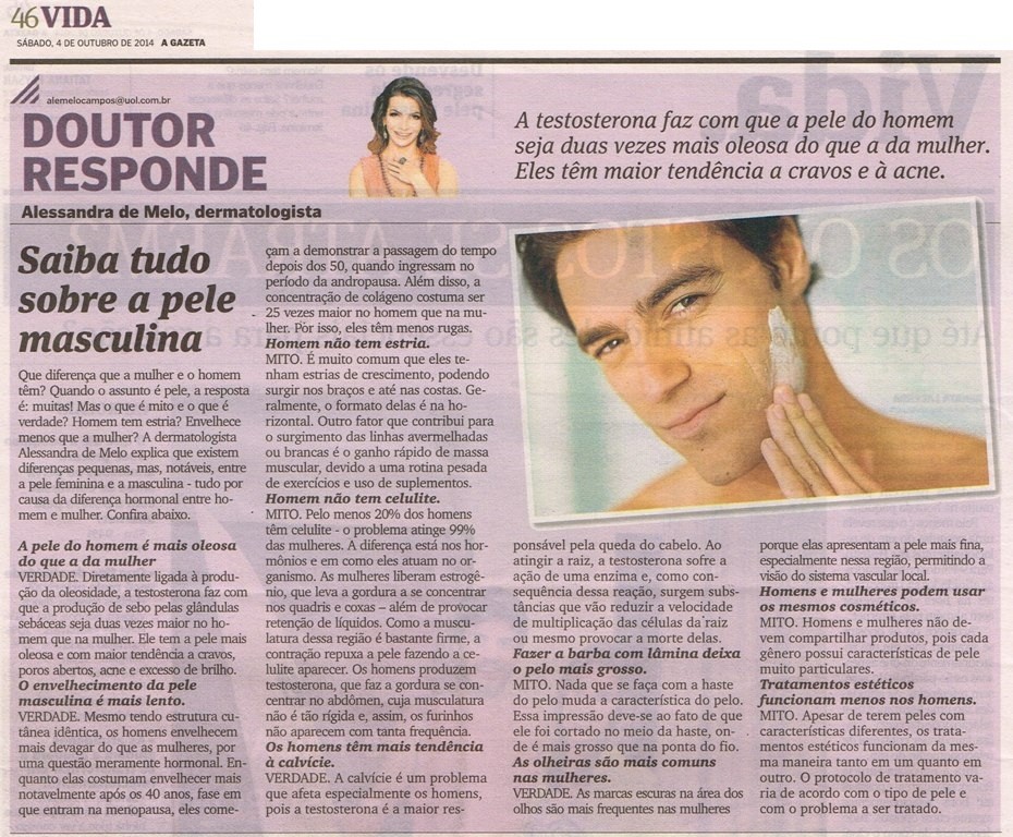 Saiba tudo sobre a pele masculina